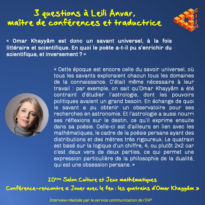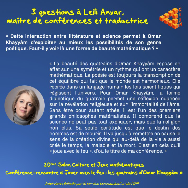 « Jouer avec le feu: les quatrains d’Omar Khayyam, poète et mathématicien persan ». Par Leili Anvar